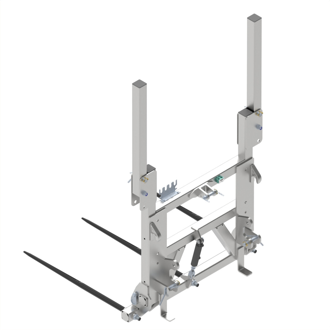 » Zinkenträger hydraulisch um ca. 90° nach oben klappbar – kein Zinkentransportschutz für Straßentransport erforderlich