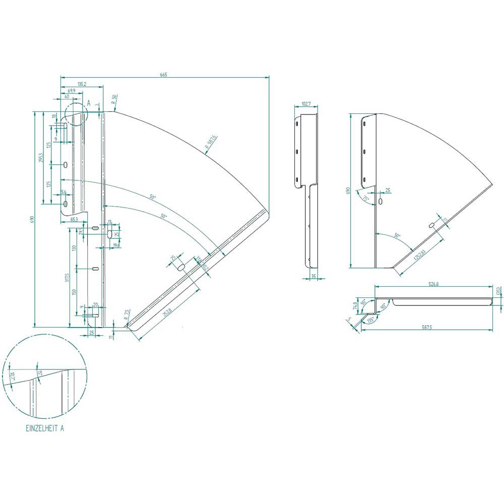 for ASW 2.3 m side wall / left / galvanised