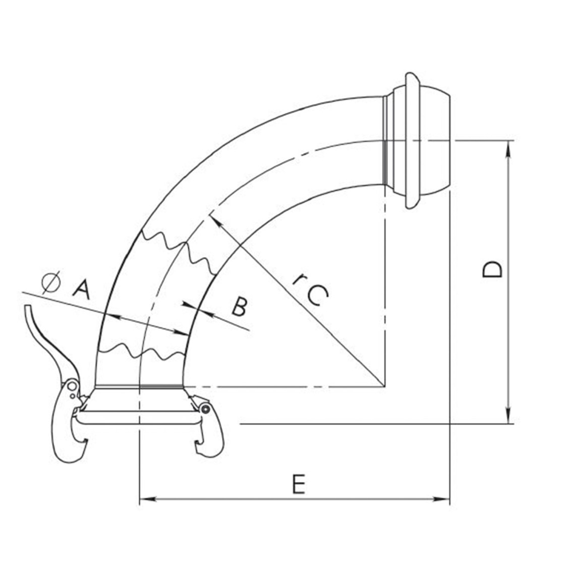Elbow 90° with M-section and V-section »galvanized« - Italian system