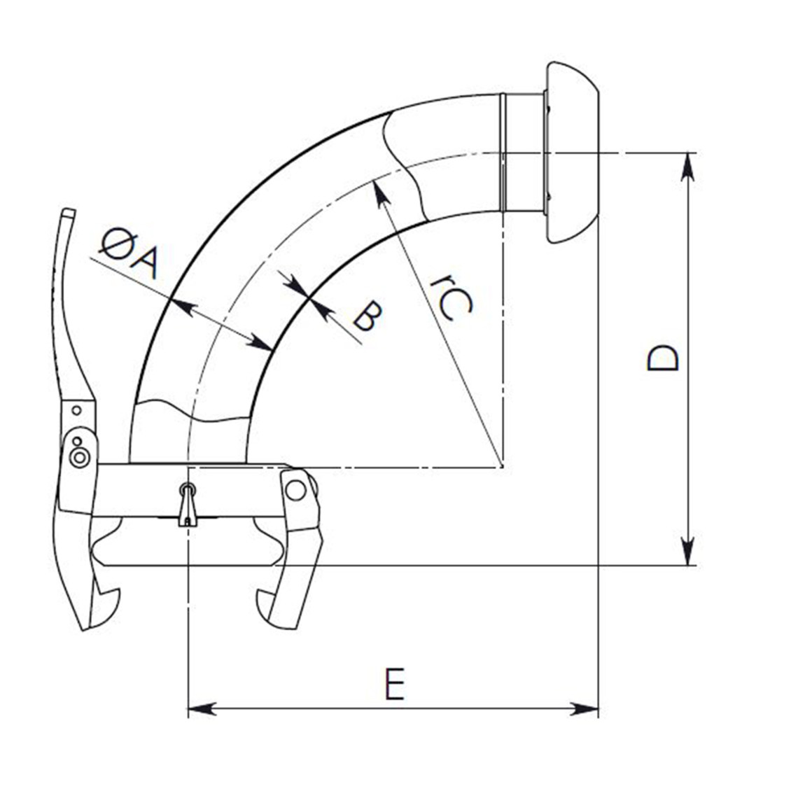 Bogen 90° - Perrot-System - Art.Nr. = GFZXXX081047 8" / MT-VT 90° / St. 1,5 mm / verzinkt