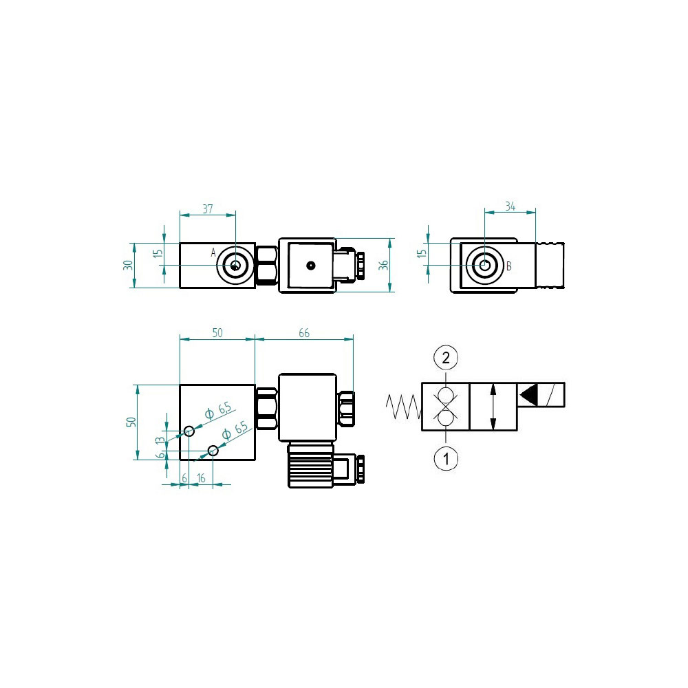 Der Absperrhahn ist elektronisch zu betätigen und dichtet beidseitig ab. In der Ruhestellung, das heißt der Absperrhahn wird nicht elektrisch betätigt, ist dieser geschlossen.