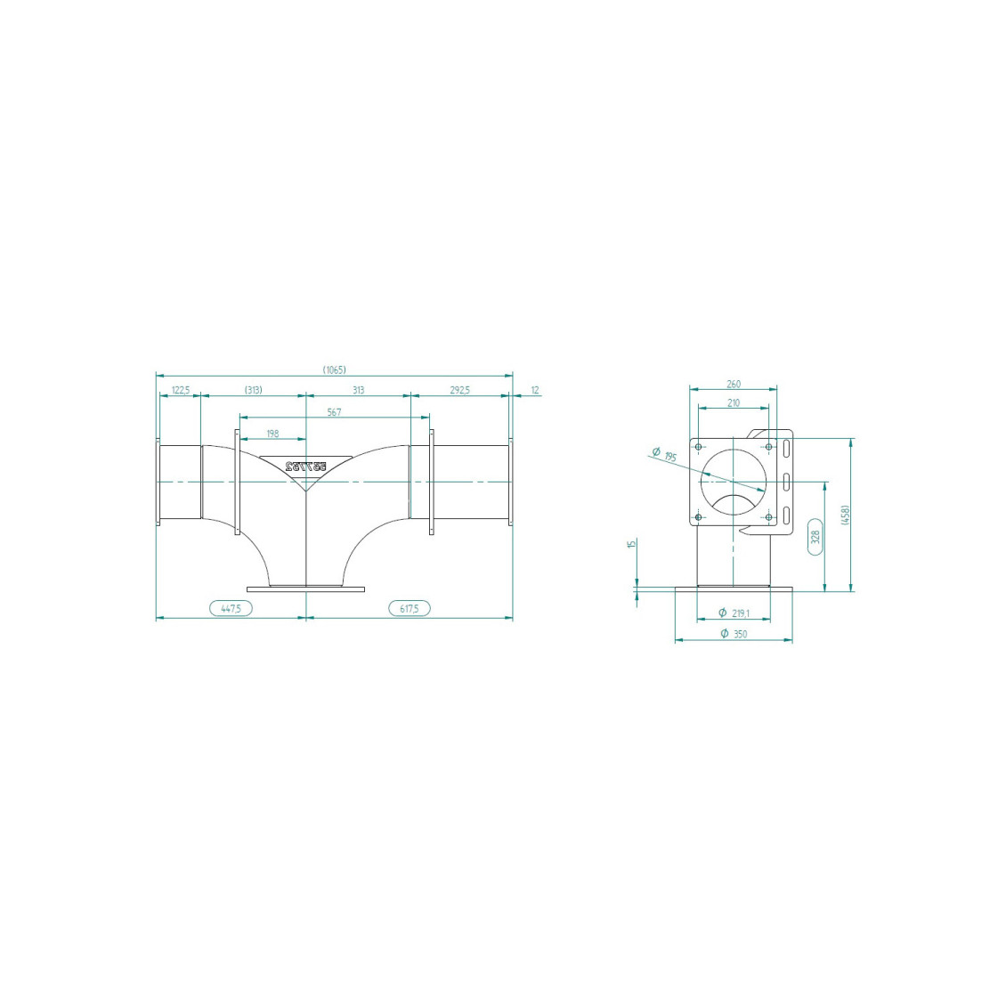 8" / Ø 195 mm / HS 210 mm / length 1065 mm / galvanised