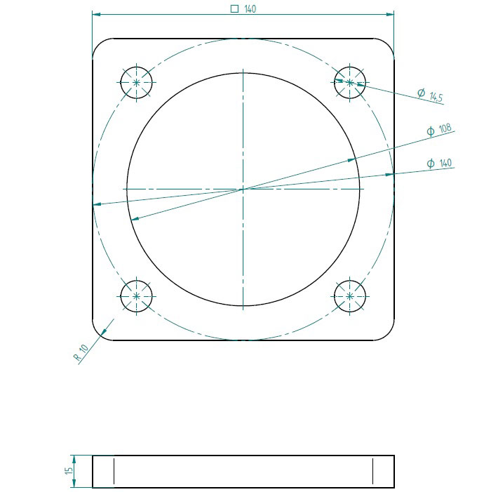 I-Ø= 108 mm / Lk= 140 mm / Maße: 140x140x15 mm / roh