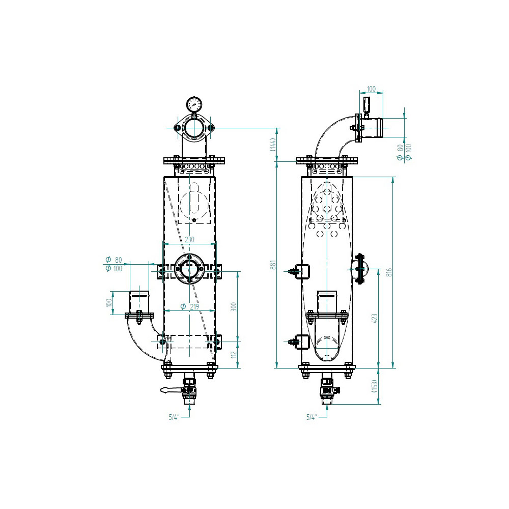 for syphon Ø 80 mm / incl. 2x nozzle Ø 80 mm / with pressure gauge connection
