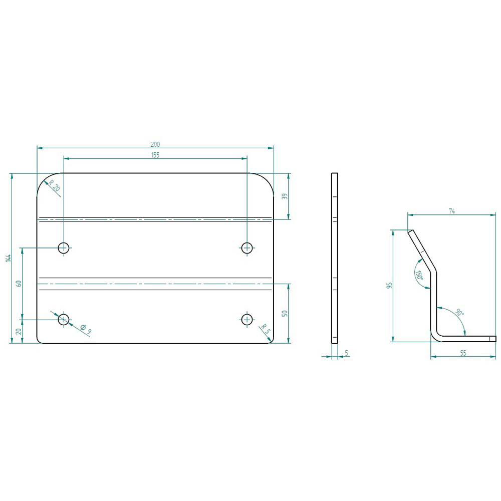 length 200 mm / width 144 mm / HS 155 x 60 mm / thickness 5 mm