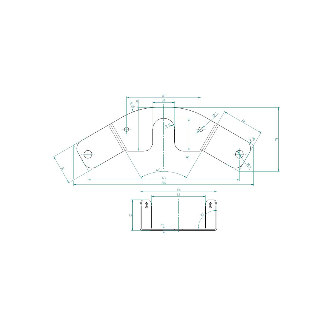 206 x 73 x 2 mm / painted / for tank with single wheel cut-out