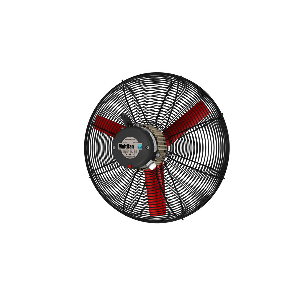 Der Milchviehventilator hat eine hohe Luftkapazität: Mit dem hohen Wurf von 146 Meter und dem hohen Wirkungsgrad, bietet der Milchviehventilator mehrere einzigartige Vorteile. Im Markt wird empfohlen alle 12-14 Meter einen Ventilator zu installieren. Die Reihenanzahl und die benötigte Ventilatorenanzahl hängen von der Belegung, der Konstruktion und der Gebrauchsweise, sowie den lokalen Klimaumständen ab. Der niedrige Geräuschpegel des Ventilators ermöglicht eine ruhige Umgebung. Für die Sicherheit ist der 3-Schaufelventilator an beiden Seiten mit einem Korb ausgestattet. Der Ventilator kann einfach am Sparren des Gebäudes installiert werden. Durch den speziellen Riemen, wird ein Riemenspanner nicht benötigt. Der Ventilator hat 1 Jahr Garantie, der Motor hat 3 Jahre Garantie und ist den aggressiven Umständen im Gebäude beständig (der Ammoniakgehalt kann in einem Milchviehstall sehr hoch werden.)