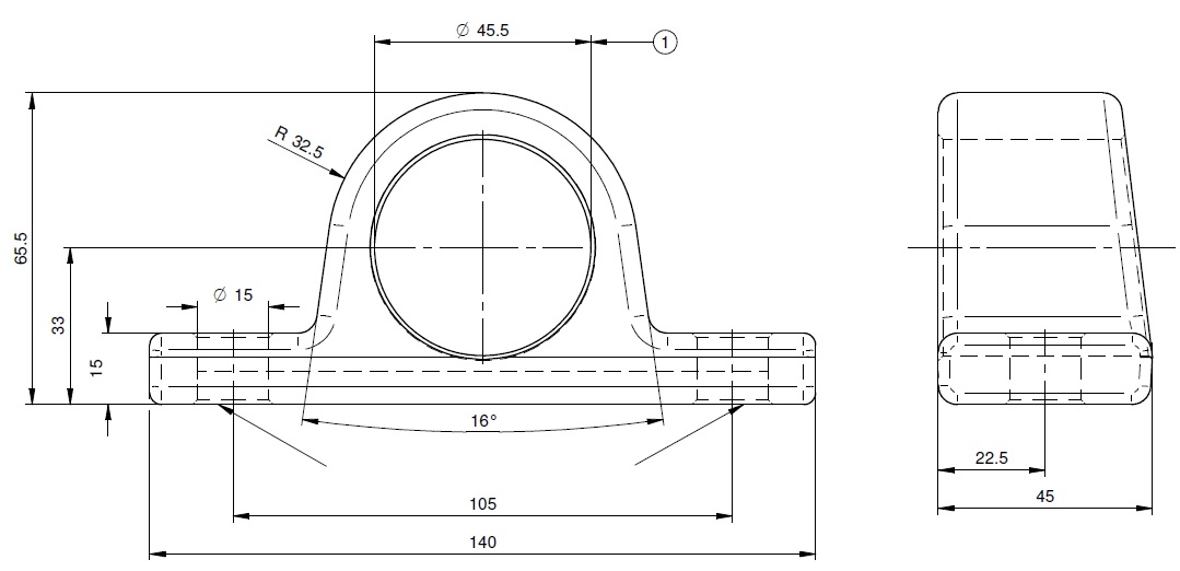 I-Ø=45,5 mm / La.=105 mm / B-Ø=15 mm / BxH= 45x65,5 mm