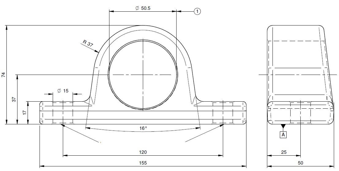 I-Ø=50,5 mm / La.=120 mm / B-Ø=15 mm / BxH= 50x74 mm