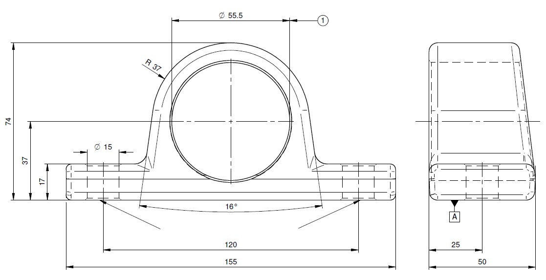 I-Ø=55,5 mm / La.=120 mm / B-Ø=15 mm / BxH= 50x74 mm