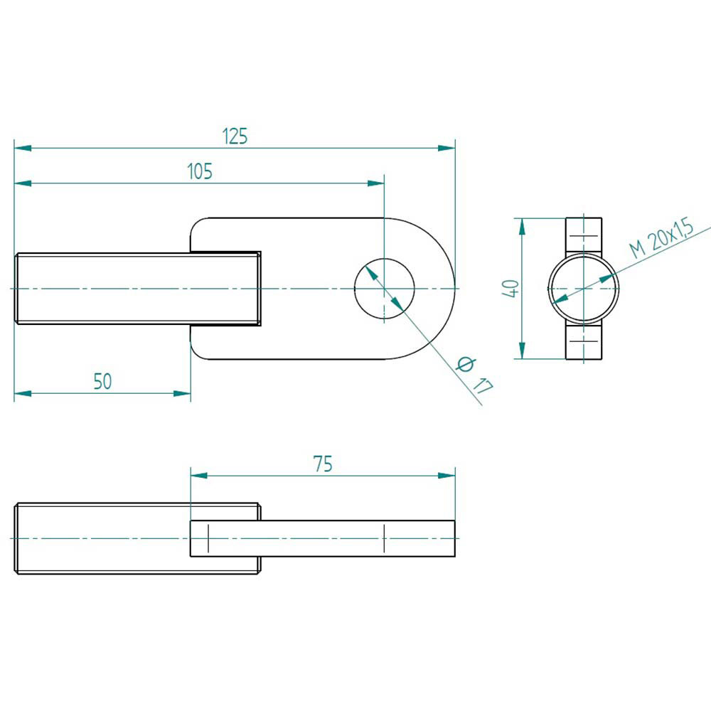Ø= 17 mm/with threaded rod M20 x 1.5 - length 50 mm/painted