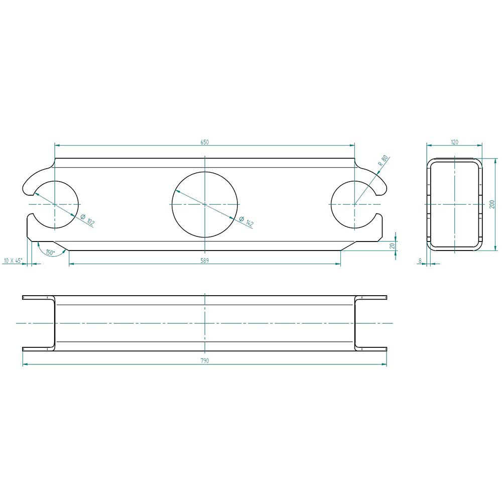 length 790 mm / width 200 mm / height 120 mm / thickness 8 mm