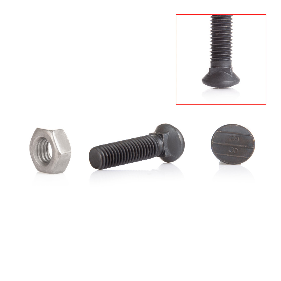 Scharschrauben Oval   Scharschraubenwerden zur Befestigung der Scharen am Pflug, Grubber oder Egge verwendet. Sie sind in einer speziellen Form angefertigt, damit sie bündig mit der Schar abschließen und so keinen Wiederstand bieten. Außerdem sind unsere Scharschrauben besonders stabil, damit ein sicherer Halt der Schar garantiert werden kann.   Technische Details: