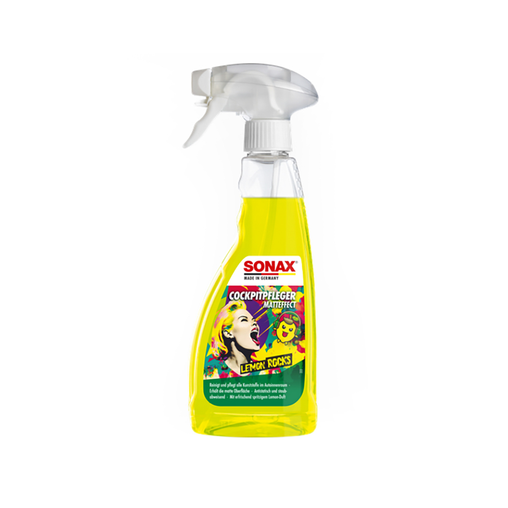 CockpitPfleger Matteffect Lemon Rocks reinigt und pflegt alle Kunststoffteile im Auto. Er wirkt staubabweisend, antistatisch und schützt Kunststoff vor Wiederverschmutzung. Hinterlässt einen erfrischenden Duft. Speziell geeignet für matte, strukturierte Oberflächen und Holzarmaturen. Das ursprünglich matte Aussehen des Cockpits bleibt erhalten, störende Reflektionen an der Frontscheibe werden vermieden. Silikon- und lösemittelfrei.