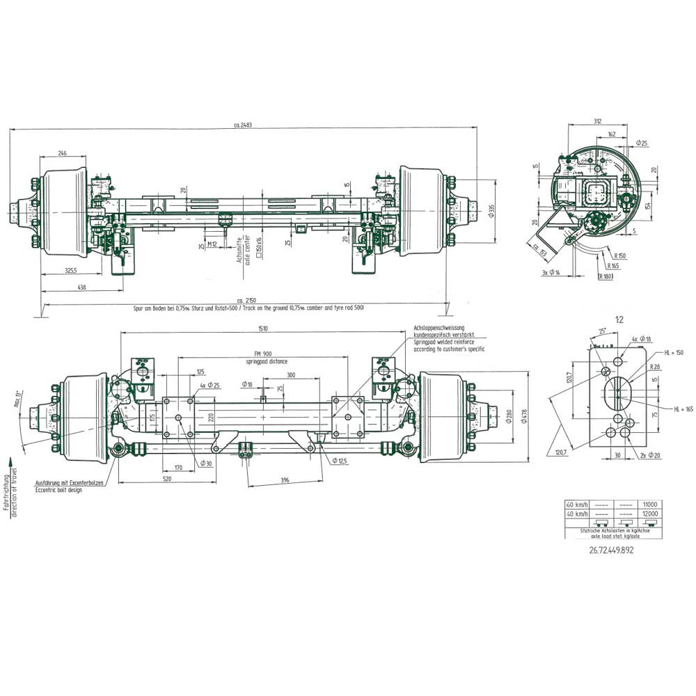 Steering axle BPW 410x180 / forced steering / 10-hole/SC 900mm/12000kg