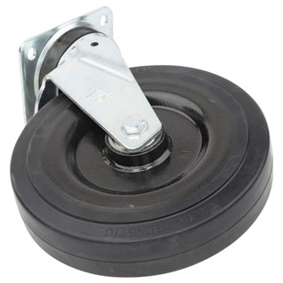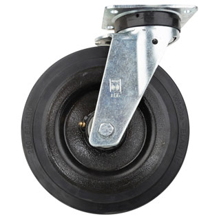 Wheels are fitted with a heavy sheet metal rim, which is vulcanised directly onto a high-quality, black rubber tyre in wheel quality with a hardness of approx. 63 Shore A