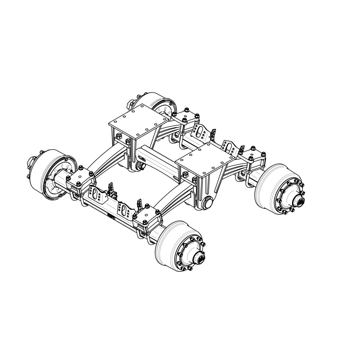 • Komplettes Tandemaggregat mit Federn und Bremsachsen