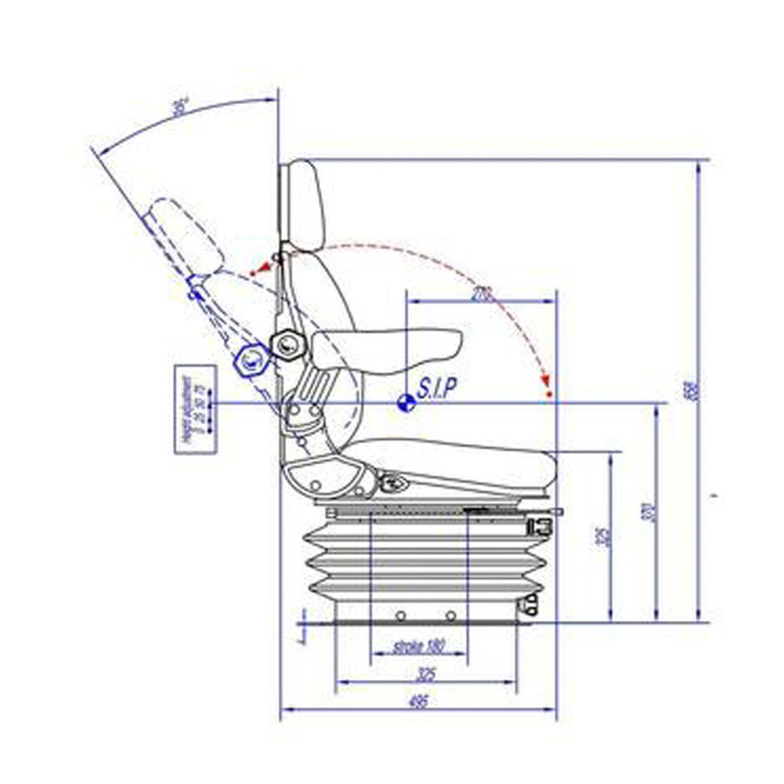 with suspension / folding armrests / black fabric / KS 85H/90ARM