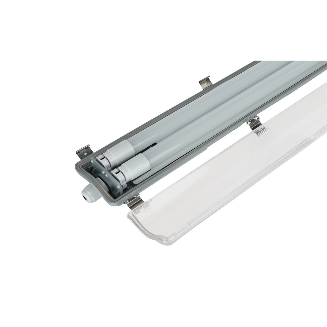 Die Wannenleuchte bietet eine effiziente und zuverlässige Beleuchtungslösung für feuchte und anspruchsvolle Umgebungen. Mit strahlwassergeschütztem Gehäuse, Edelstahl-Montageclips und aus robustem ABS- und PC-Kunststoff gefertigt, ist sie extrem robust und widerstandsfähig.