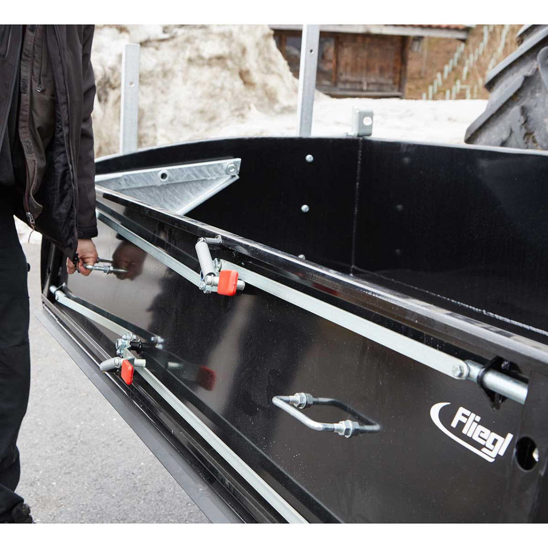 » Flexible Klappwand kann durch Umstecken als Verlängerung der Ladefläche oder als Rückwanderhöhung genutzt werden