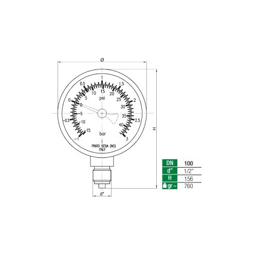 -1/+3 bar / Ø= 100 mm / mit Glyzerin / Anschluss 1/2" (unten)