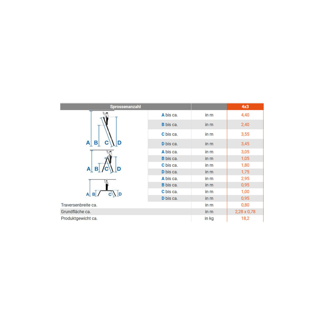 4 x 3 Sprossen / Arbeitshöhe 4,4 m / mit Plattform