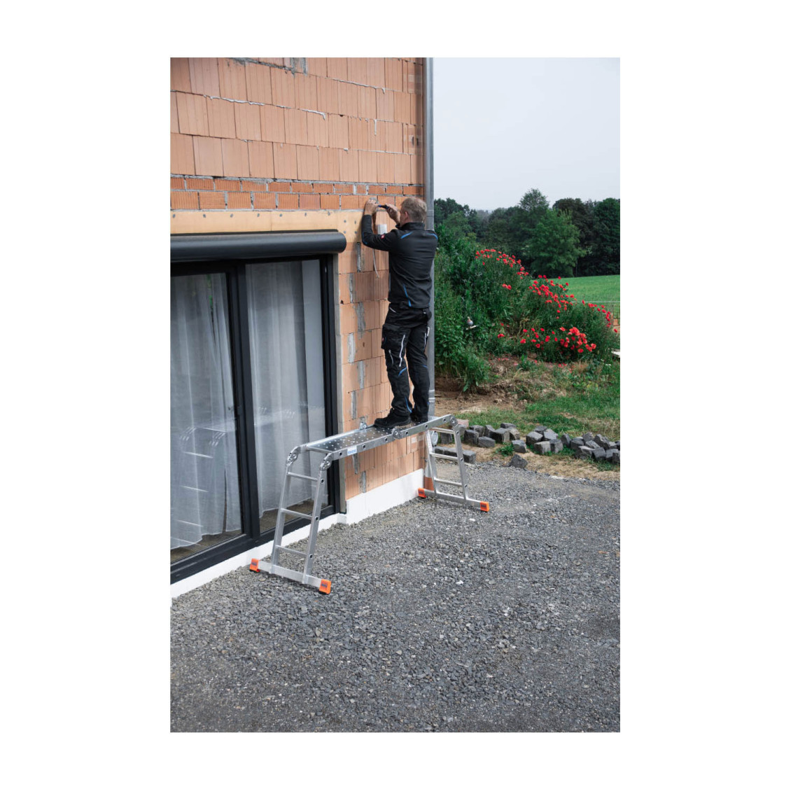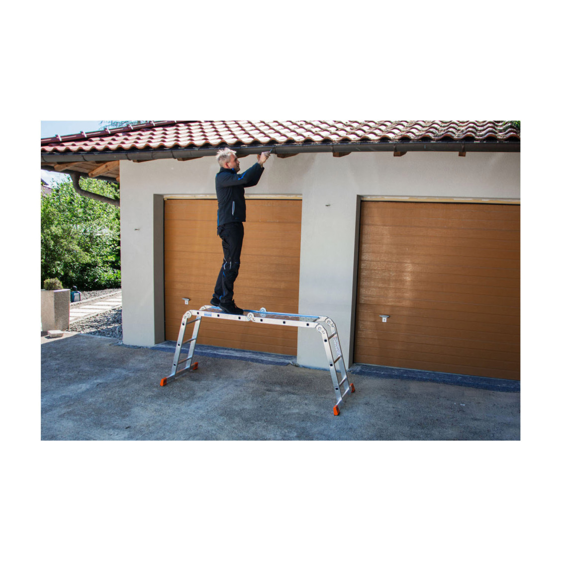 Flexible Gelenkleiter, universell einsetzbar als Anlege-, Stehleiter und als Arbeitsbühne (4 x 3 Sprossen).