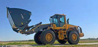 Mit einem Volumen von rund 5 m³ bietet die »T-Rex« reichlich Kapazität für unterschiedlichste Materialien – von Kies und Sand über Erde bis hin zu leichten Schüttgütern. Die kompakte Bauweise mit einer Tiefe von 1.785 mm, einer Arbeitsbreite von 2.950 mm und einer Höhe von 1.577 mm gewährleistet eine optimale Balance zwischen Fassungsvermögen und Stabilität. Der Auskippwinkel von 89° sorgt dabei für eine nahezu vollständige Entleerung der Schaufel.