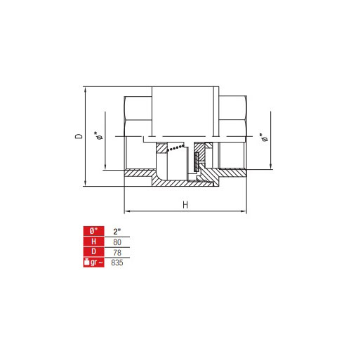 Rückschlagventil mit Metallteller - Art.Nr. = GFZXXX800281 2" / bis 25 bar Betriebsdruck / aus Messing