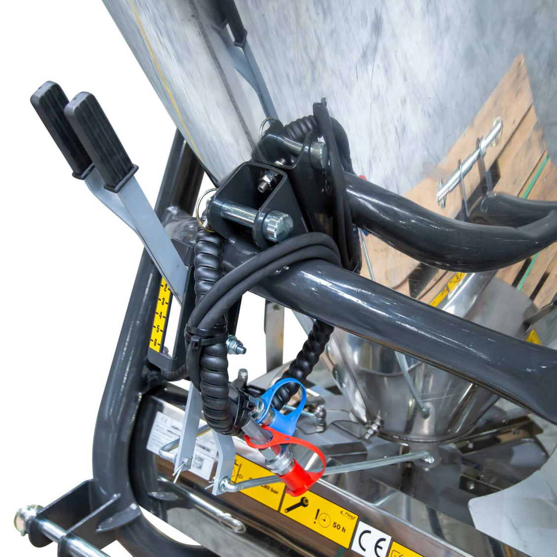 » Der Streuer hat eine hydraulische Öffnung der Auslassmenge
