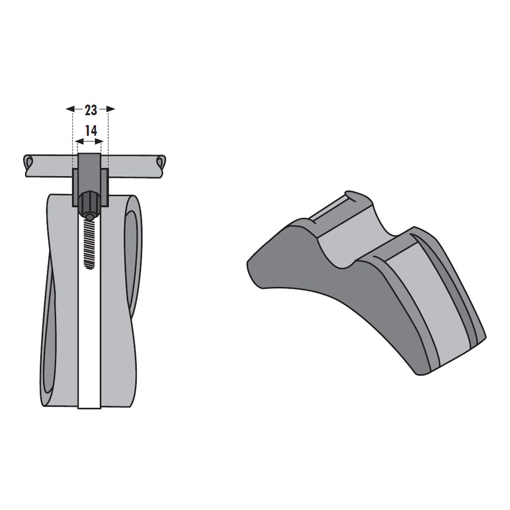 Zur Befestigung von Hydraulikrohren auf Hydraulikzylindern. Der aus Santopren gefertigte Sattel schmiegt sich dem Zylinderrohr an. Schlauchschellen mit einer maximalen Breite von 14 mm zurren dann das Hydraulikrohr (12 - 15 mm) an das Zylinderrohr fest.