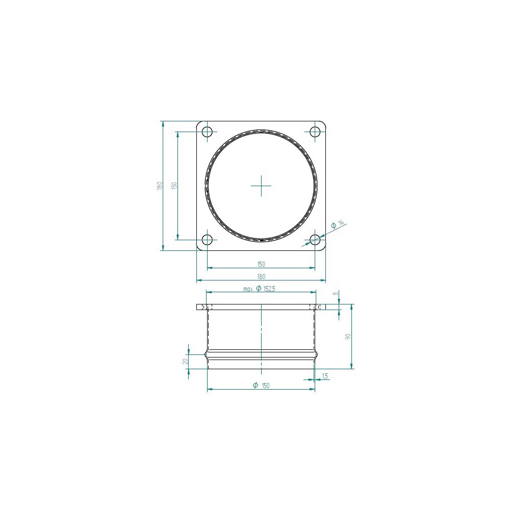6" / Ø 150 mm / 4-Loch / La.= 150 mm / Höhe= 90 mm