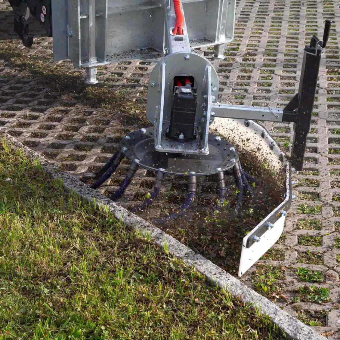 Der hydraulisch angetriebene Wildkrautbesen entfernt mühelos und chemiefrei jegliche Art von Unkraut.