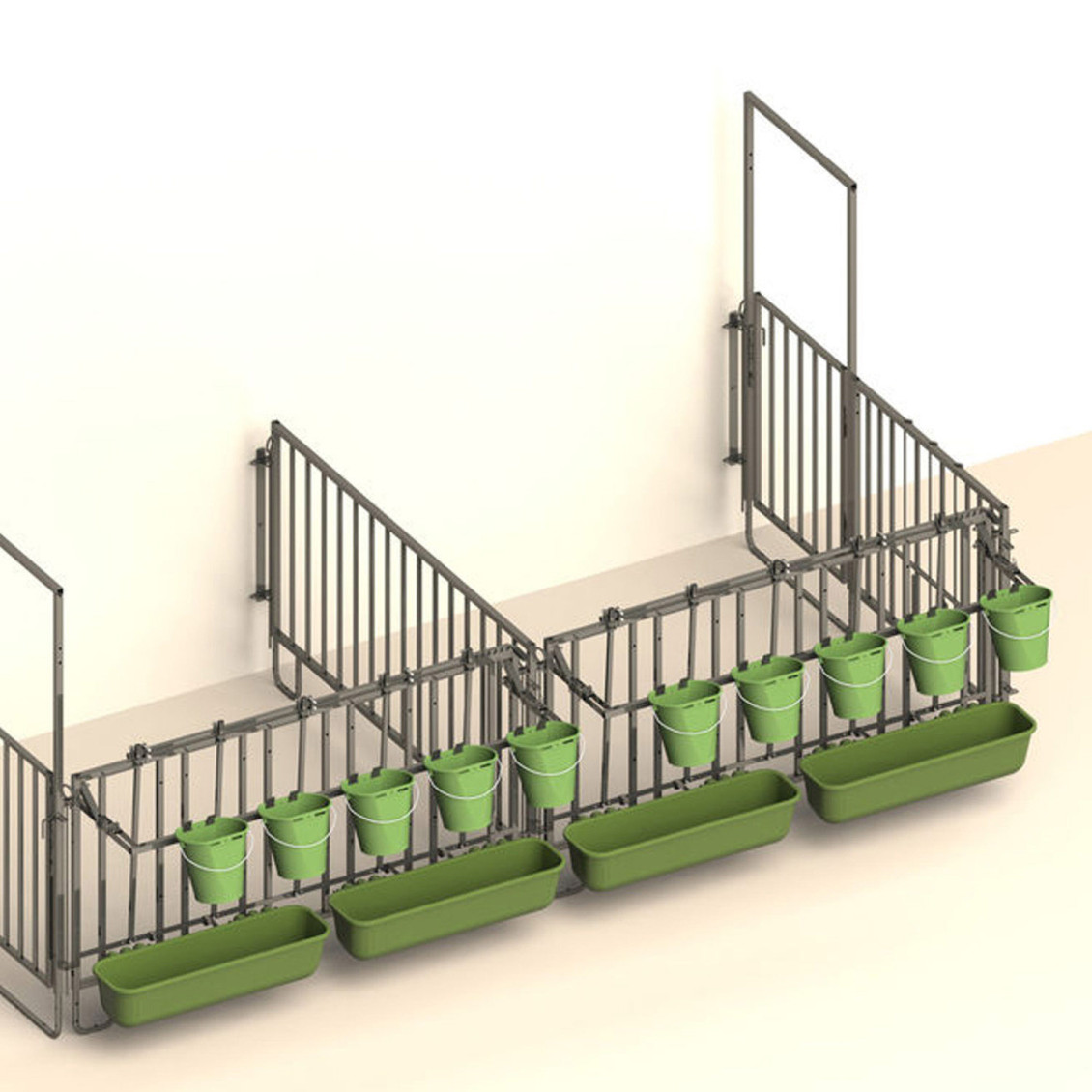 Zur Haltung der Kälber in einer Halle oder überdachtem Bereich, kann die Umzäunung einfach mittels einer Wandhalterung an der Wand befestigt werden. Oder die Umzäunung wird am Boden verankert. Individuell kann die Umzäunung je nach Anforderungen zusammengestellt werden.